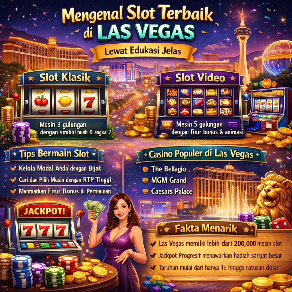 Las Vegas selama puluhan tahun dikenal sebagai pusat hiburan kasino yang menghadirkan ribuan mesin permainan slot dengan berbagai tema dan teknologi modern. Bagi banyak orang, slot bukan sekadar permainan keberuntungan, tetapi juga bagian dari pengalaman hiburan yang menarik dan dinamis. Karena itu, penting bagi pemain untuk mengenal slot terbaik di Las Vegas lewat edukasi jelas agar tidak hanya mengikuti tren tanpa memahami mekanisme permainan yang sebenarnya. Melalui pendekatan yang lebih informatif dan humanize, pembaca dapat memahami bagaimana mesin slot populer berkembang serta mengapa beberapa permainan menjadi pilihan favorit di berbagai kasino terkenal di Las Vegas.